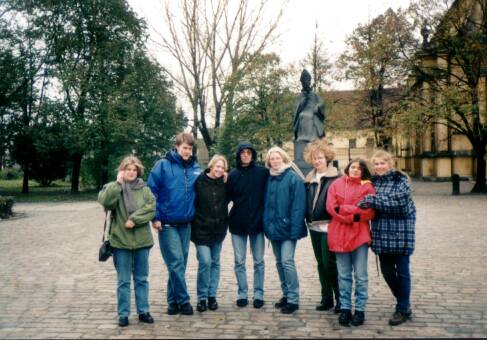 Zum Glück waren wir nicht gekommen, um die Stadt als touristisches Highlight zu erkunden, denn außer vielen heruntergekommenen Plattenbauten, ein paar dreckigen Fabriken (der Stolz der Einwohner war, daß einige Szenen aus ‘Schindlers Liste’ dort gedreht worden waren) und einem großen Bahnhof gab es nicht viel zu sehen. Wenn ihr also jemals eine Reise nach Polen plant, so könnt ihr ruhig einen großen Bogen um Skarzysko machen. Abgesehen davon: Hotels gibt es dort garantiert nicht. Doch die Gastfreundschaft der Polen hält, was man sich davon erzählt: Unsere Gastfamilien lasen uns jeden Wunsch von den Lippen ab. Während der 3 ½ Tage Aufenthalt in der ‘häßlichsten und dreckigsten Stadt der Welt’ kamen wir mit in die Schule, besichtigten eine mittelalterliche Stadt – vielmehr deren Unterbau (Kellergewölbe durchzogen den Untergrund der Stadt wie einen Schweizer Käse) – und fuhren Einkaufen nach Kielce. Die Abende verbrachten die meisten von uns in einem verrauchten Pub – Zeit zum sich langweilen gab es erst gar nicht; man hatte sich immer viel über die gegenseitigen persönlichen Erfahrungen zu erzählen. Wenn die Abende nicht gar noch eigenen Gesprächsstoff lieferten... Wir wurden zu einer verschworenen Gemeinschaft und hatten alle zusammen den größten Spaß in Skarzysko.